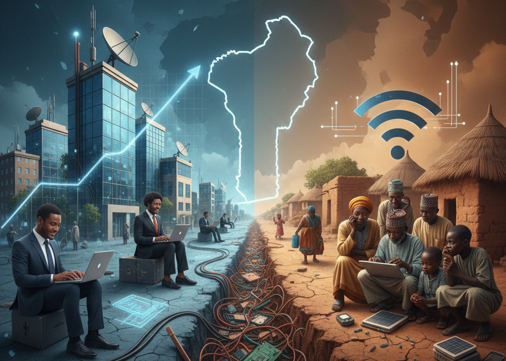 Malgré les avancées numériques notées, le diagnostic dressé dans le cadre du Plan BÉNIN 2060 ALAFIA met en lumière une fracture numérique persistante. Le faible taux de pénétration d’Internet se fait ressentir. Fin 2025, environ 4,80 millions de personnes utilisaient Internet au Bénin, soit 32,2 % de la population. Cela signifie qu’environ 67,8 % des Béninois restaient hors ligne. D’autres sources indiquent aussi un taux d’usage autour de 34 % de la population selon l’Internet Society.
